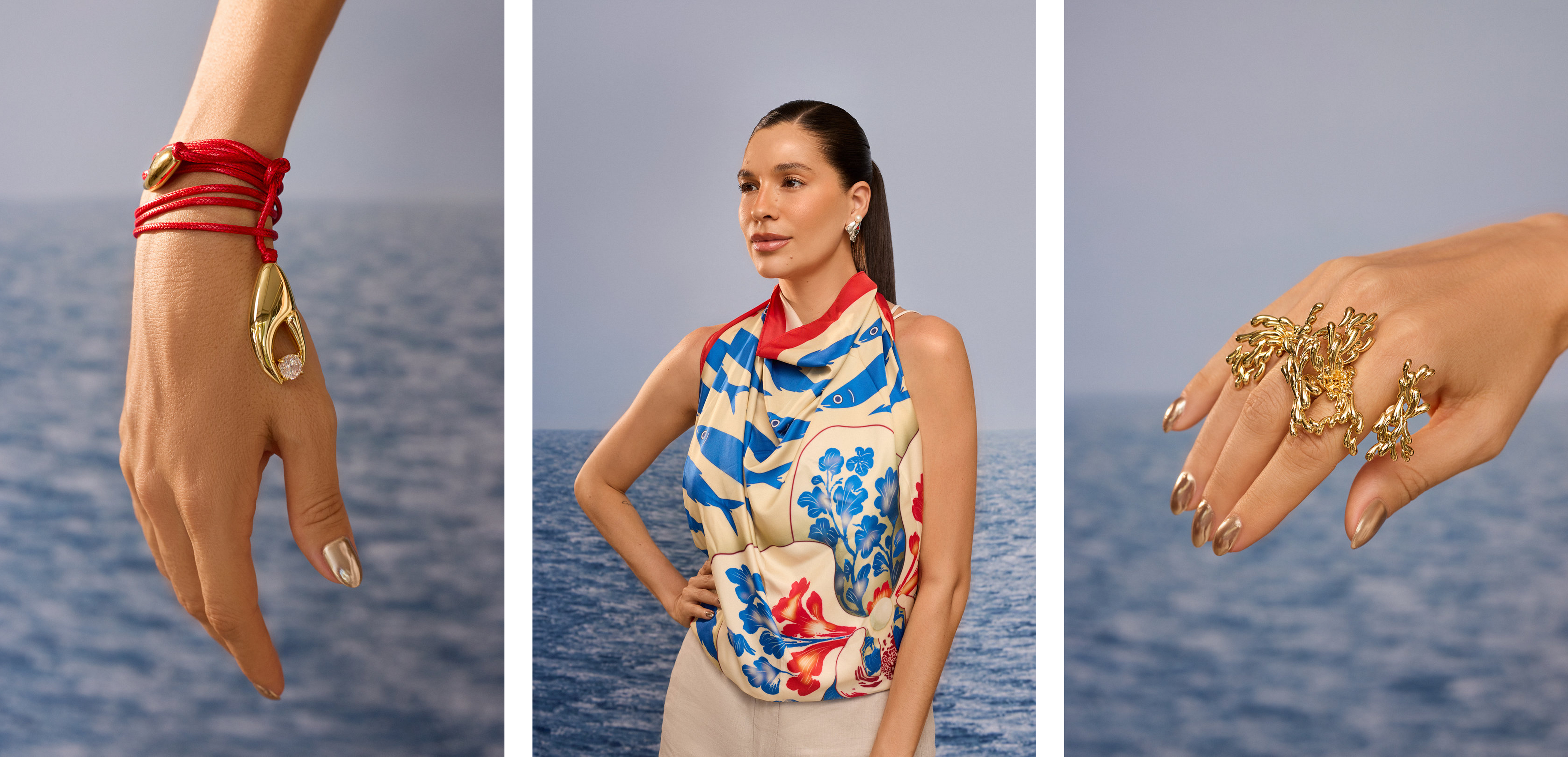 Inspirada nas formas orgânicas do oceano, nas texturas que se transformam com a luz e nos movimentos que nunca se repetem, a coleção revela o poder da mulher criativa, sensível e profunda, aquela que cria a própria maré.