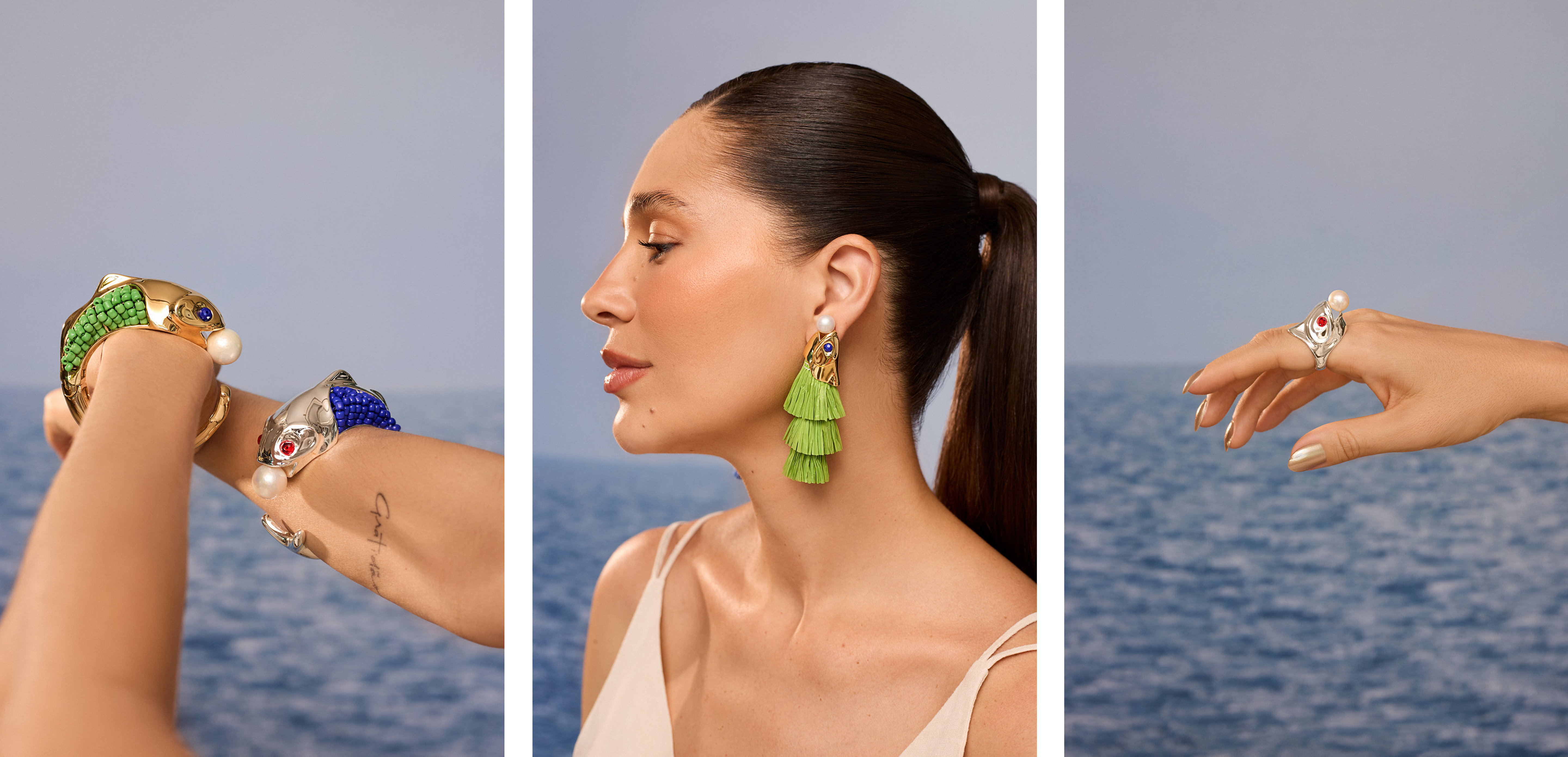 O símbolo da fluidez e da conexão espiritual. Na coleção, representa a mulher que segue sua corrente interna com leveza e certeza silenciosa.
