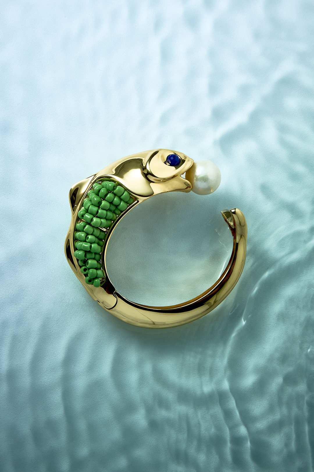 Formas poderosas de águas-vivas, lagostas, peixes e estrela do mar, que marcaram as passarelas, são traduzidas em peças esculturais que exalam força e glamour.