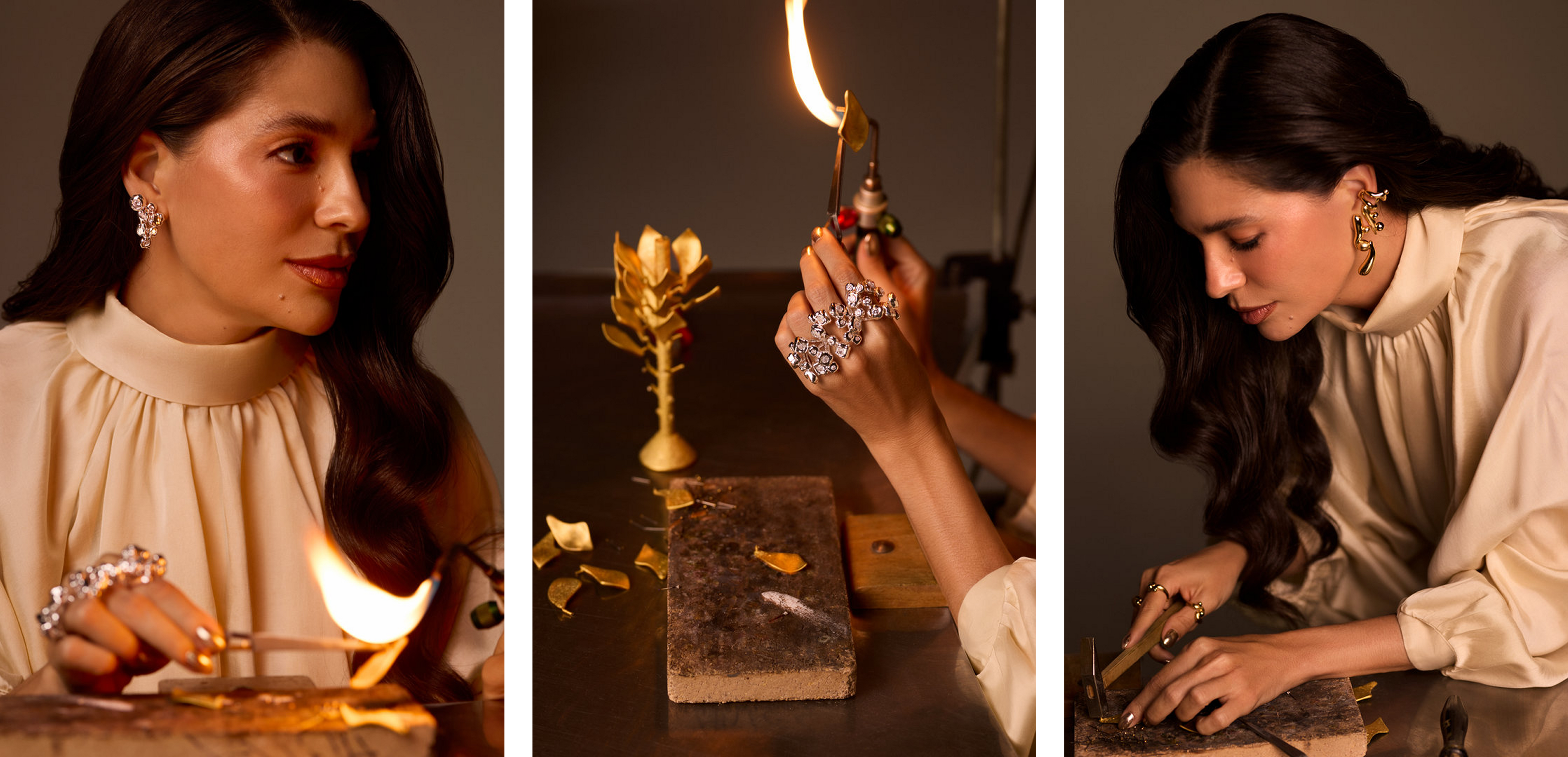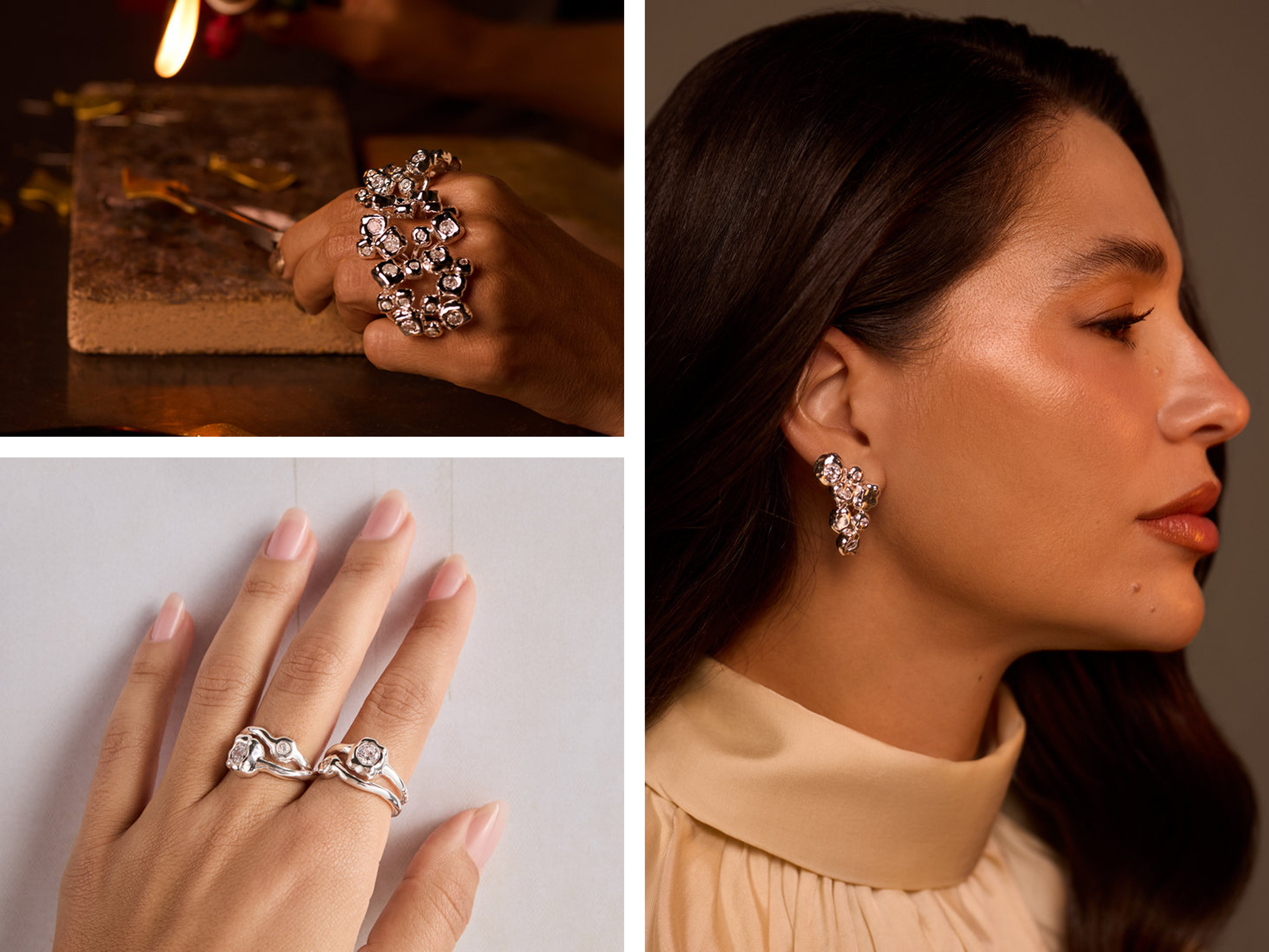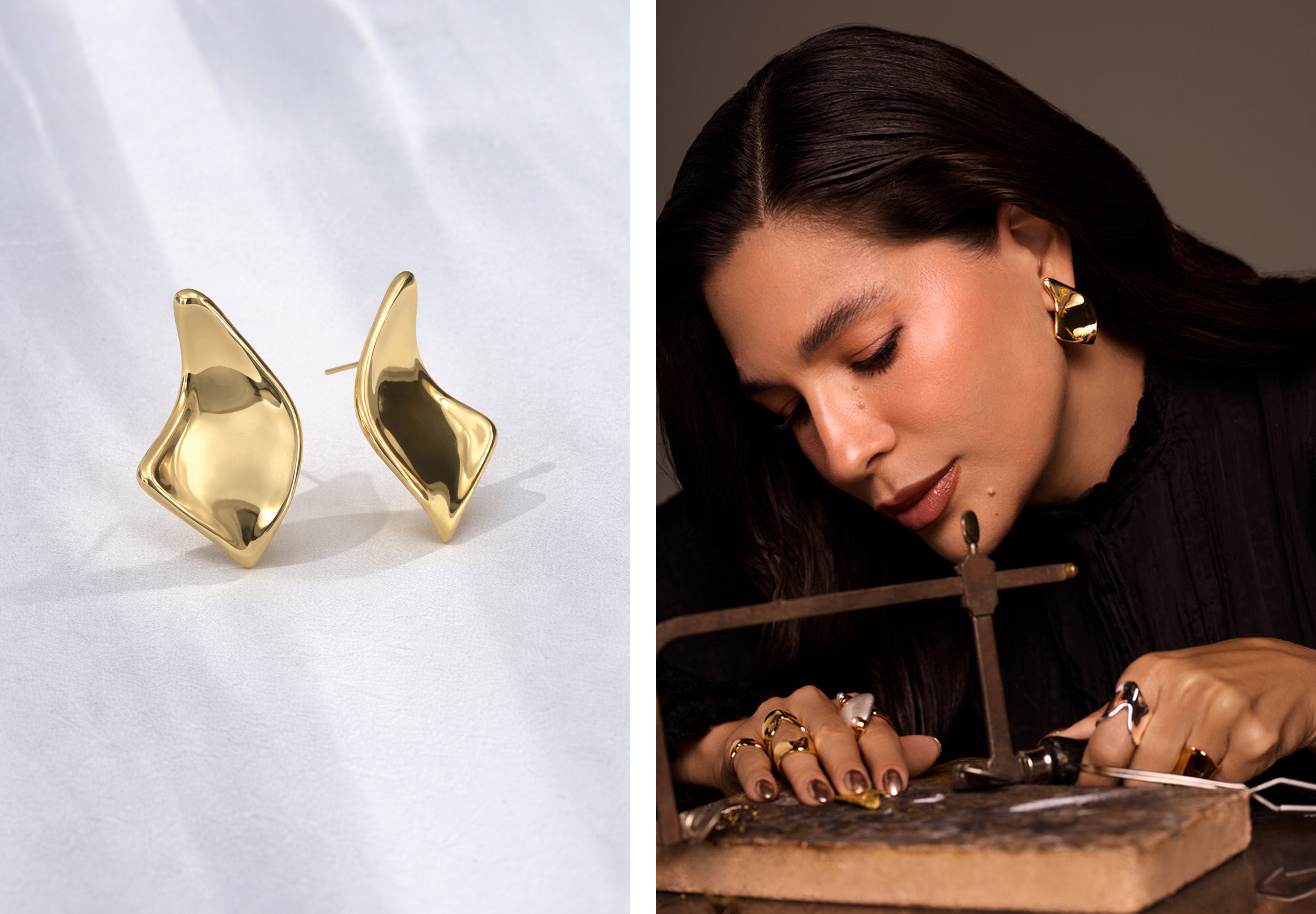 Formas puras e um design atemporal revelam a beleza do que é essencial. Com peças maximalistas que equilibram o metal bruto — força original, sem filtros — a coleção traz uma potência em estado puro, esculpida com precisão e intenções esculturais.