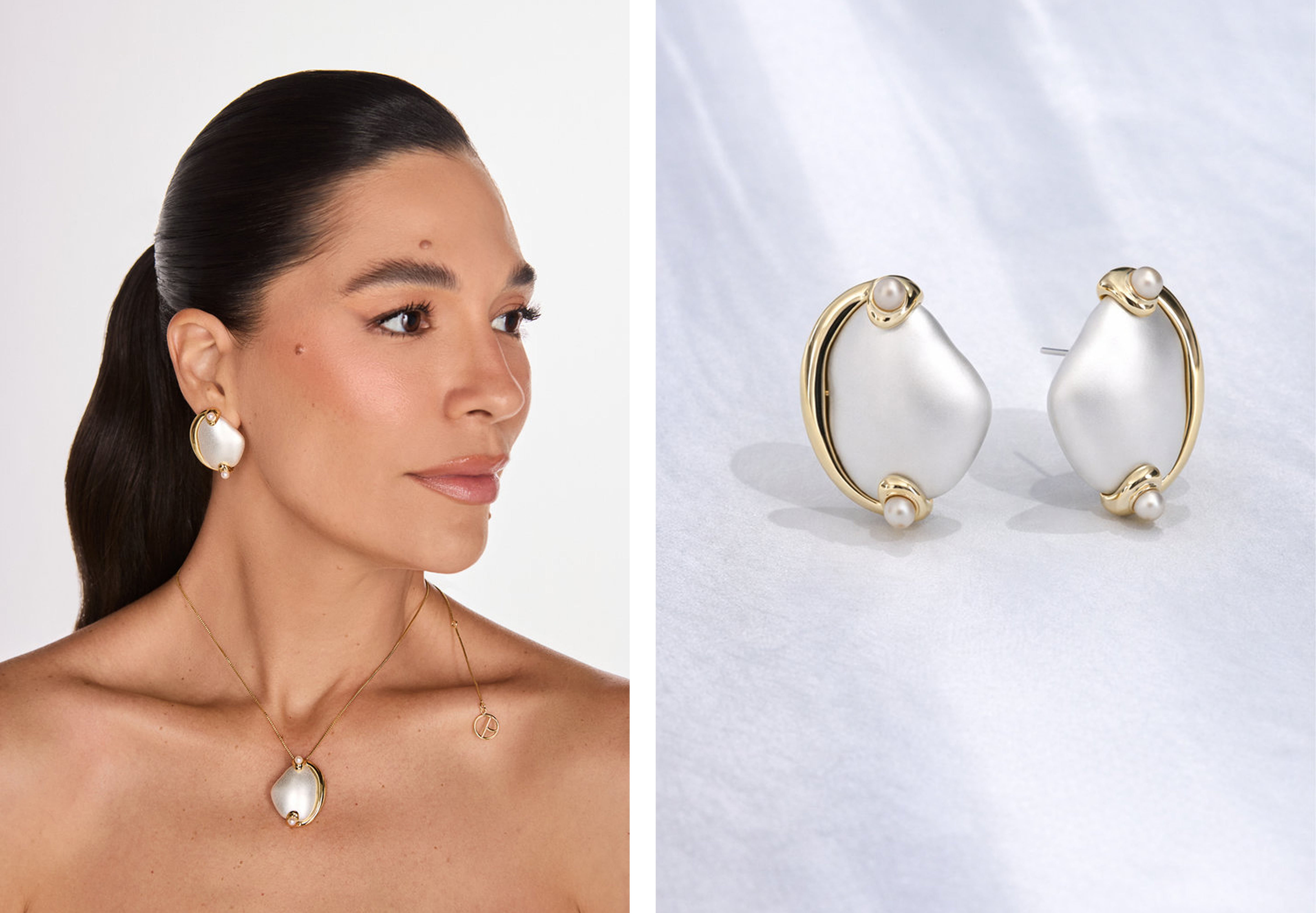 O contraste entre os acabamentos fosco e polido, o bicolor e a composição não convencional inserem a peça claramente no campo do design contemporâneo autoral. O uso de pérolas naturais garante longevidade e resiliência, ressaltando a capacidade de criar beleza a partir da própria história.