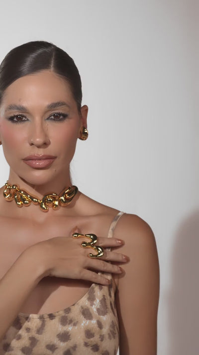 As inconfundíveis manchas no pelo do Jaguar são a principal fonte de inspiração para nossa linha Kira, preservando uma essência clássica do “animal print”. As peças trazem um design orgânico, atemporal e extremamente poderoso. No anel, trazemos uma forma abaulada e minimalista, com acabamento polido, e, se usado como elemento de repetição, enche as mãos das “pintas” do jaguar, criando um efeito poderoso.