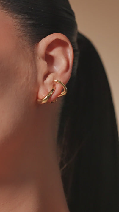 Peças com uma leitura poética, unindo o metal orgânico com referências liquidas que transmitem leveza e modernidade, o brinco earjacket delicado veste as orelhas com estilo e sofisticação.